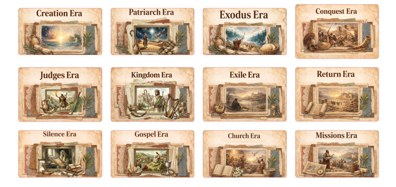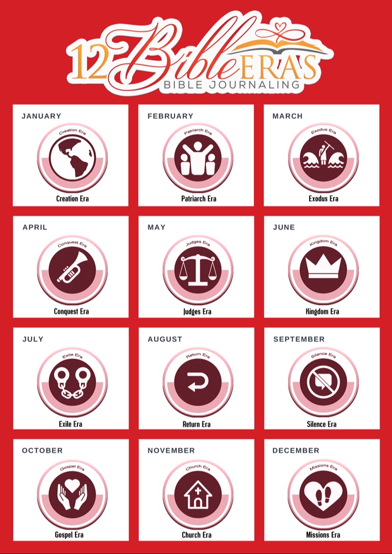 Over 20 years ago, I found a structured strategy to unlock the treasures of God's Word to see it as one unified story. We journal through the entire Bible using the 12 Bible Eras method. We study one historical era in-depth each month.