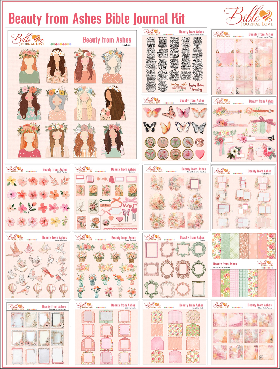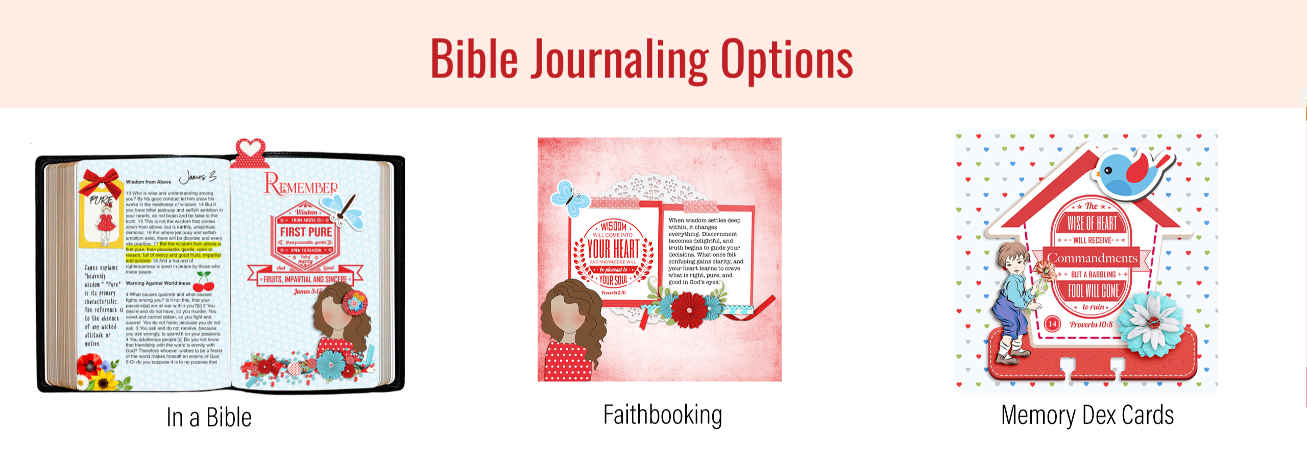 We offer dozens of kits for Bible journaling in printable (PDF) and digital (png) kits. Our Bible classes include digital tutorials.