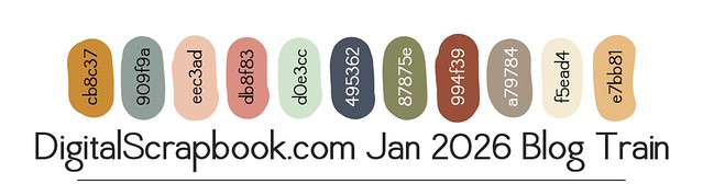 Every month, DigitalScrapbook.com hosts a community Blog Train—one shared journey, many designers, one beautiful color palette. January’s palette was soft, warm, and gently vintage, and as soon as I saw it, I knew exactly what it needed to become. Creation. 🌿