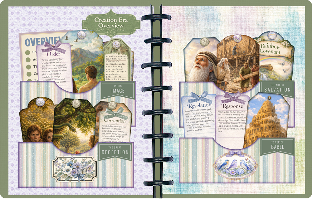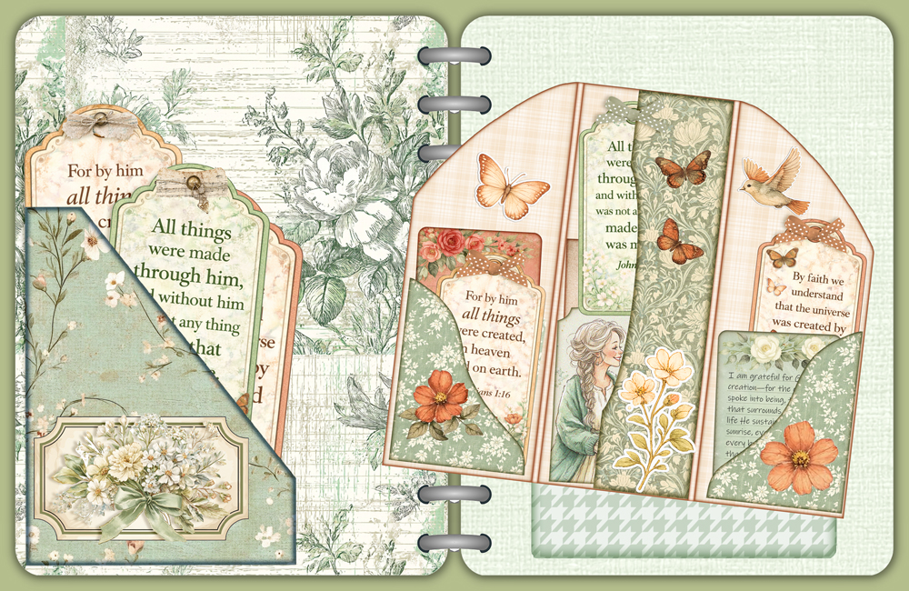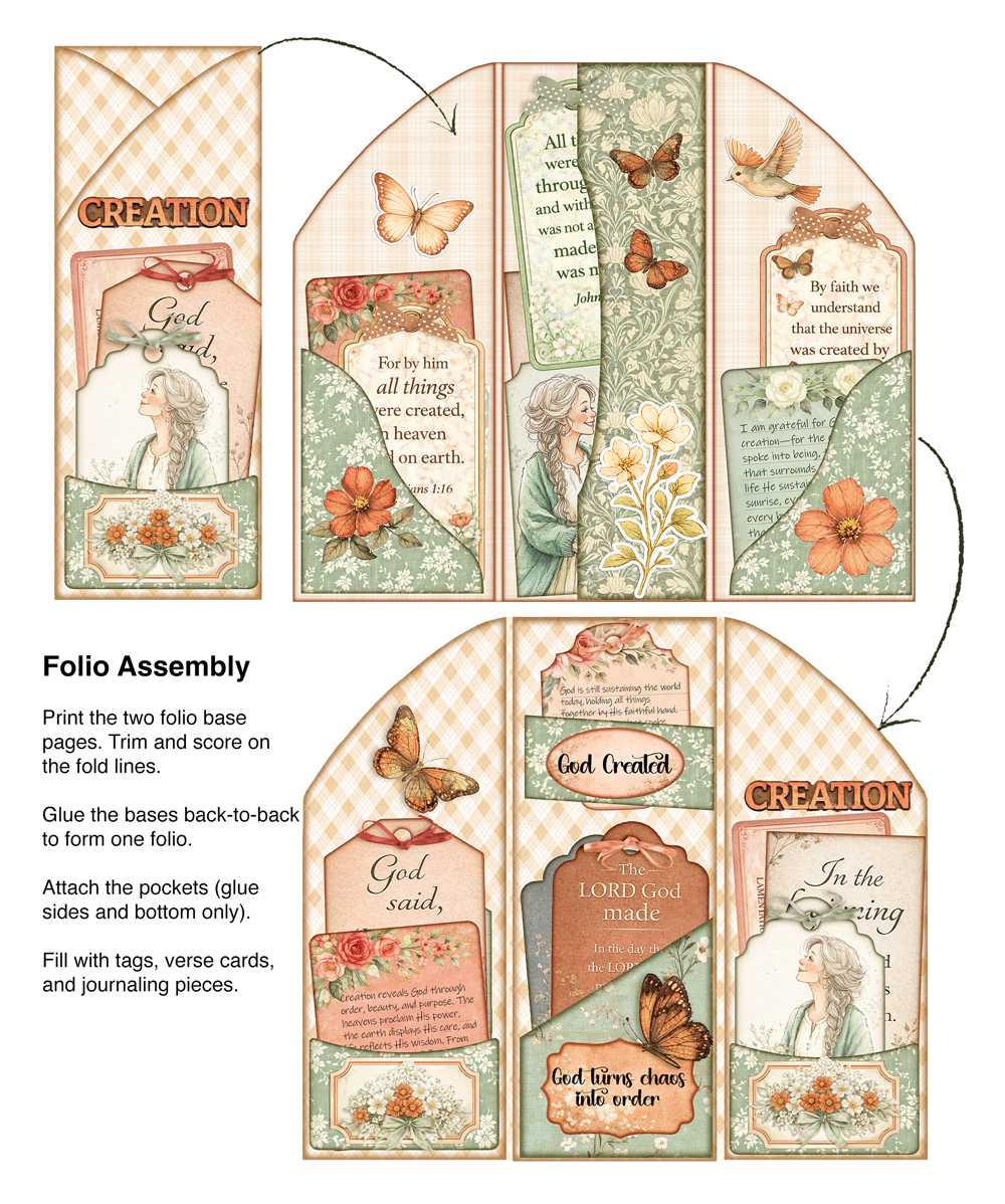 This folio fits beautifully into your Creation journal and gives you a gentle on-ramp—cutting, layering, tucking verses, and settling into the rhythm of journaling through Scripture before the lessons officially open.