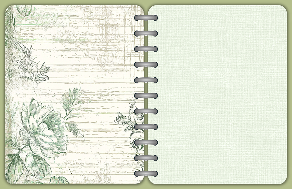Lay the foundation. Begin by printing green pages from the background pages from the Creation Kit and punching them for your disc-bound journal.