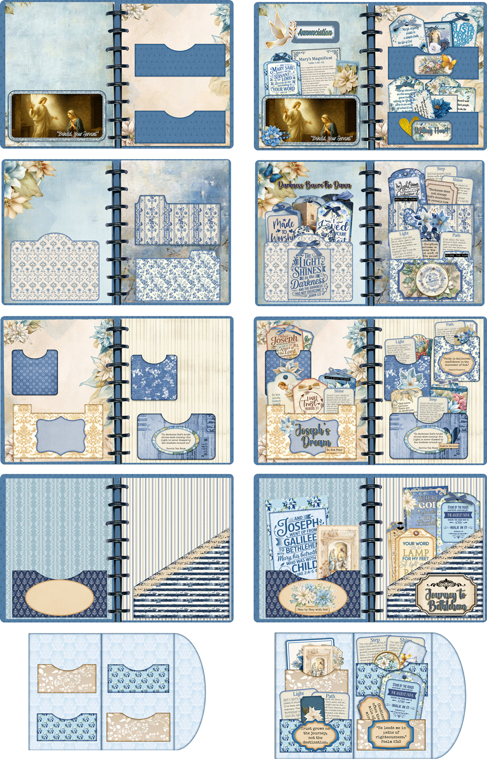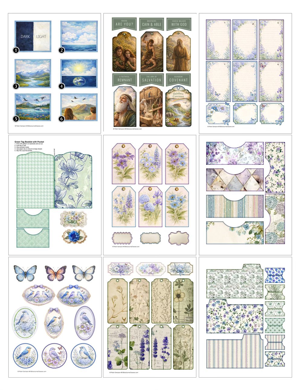 Here are pages before and after tags and journal cards from our December Bible Journal Class