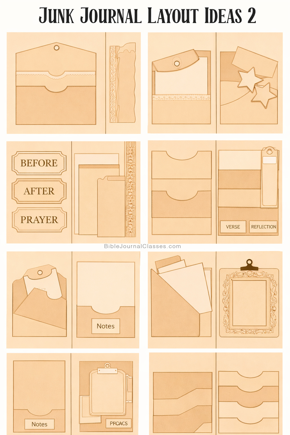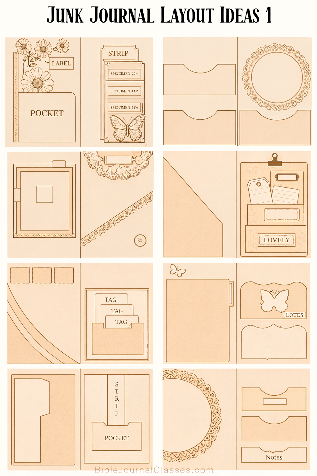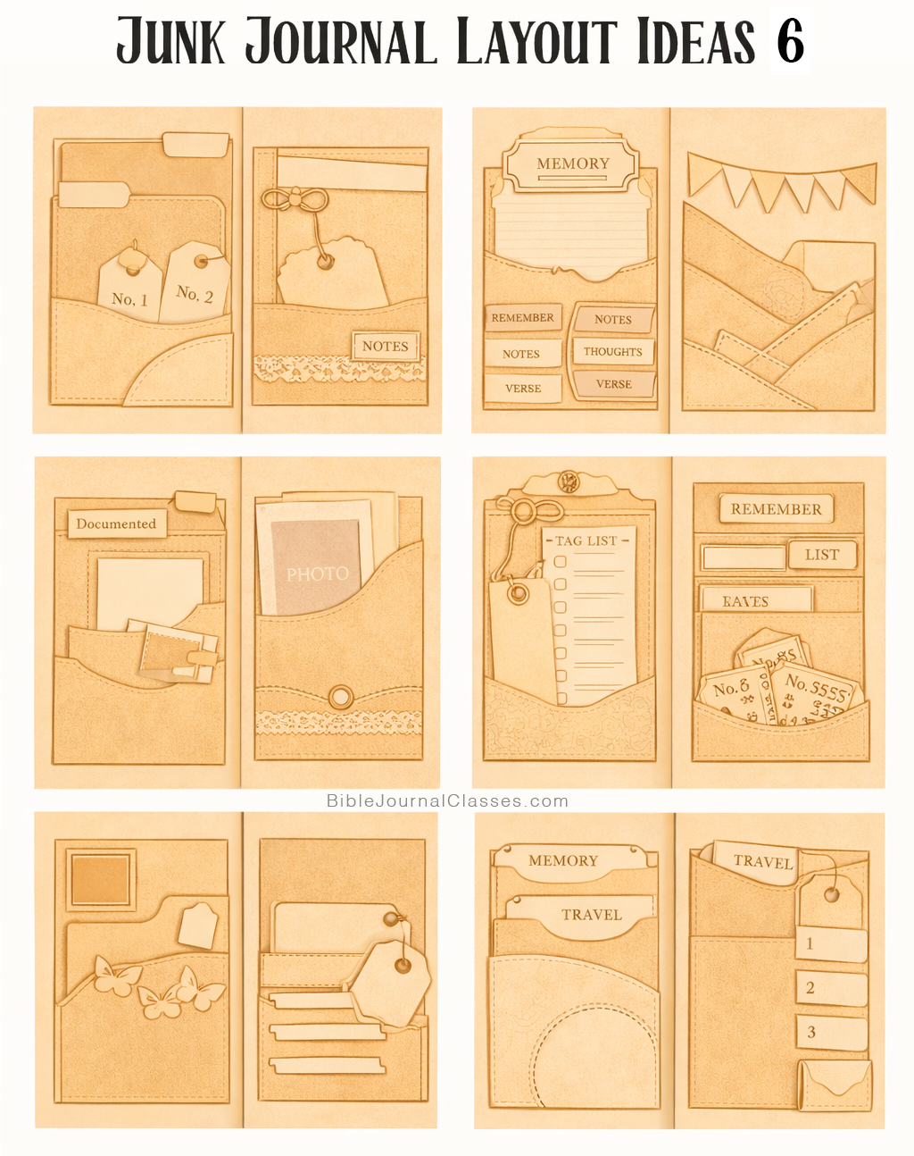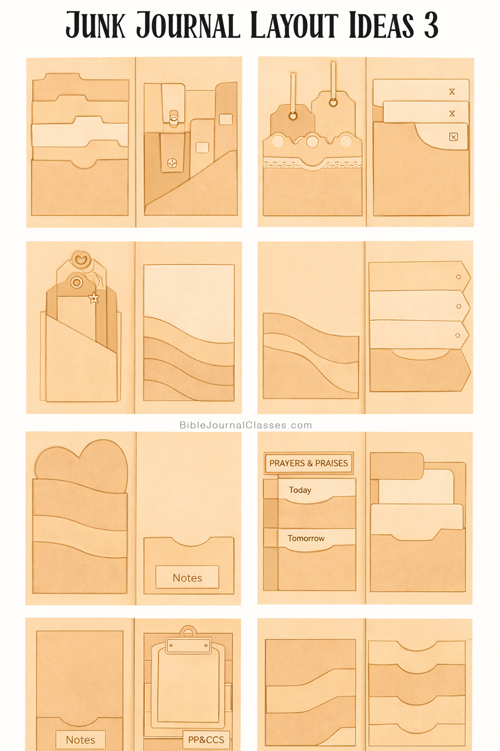 I use junk journal techniques for Bible study so I call them Treasure Journals. I am always looking for the next layout idea. My eyes are always scanning.