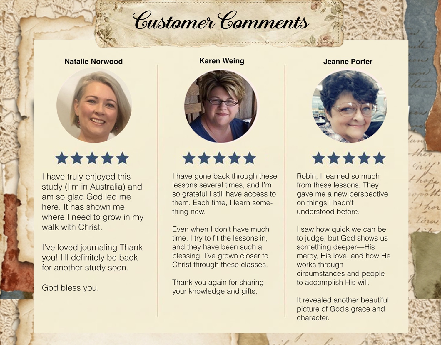 I 'm Robin Sampson McCarthy, and for over 30 years, I've had the joy of teaching Bible studies and helping others grow closer to God.