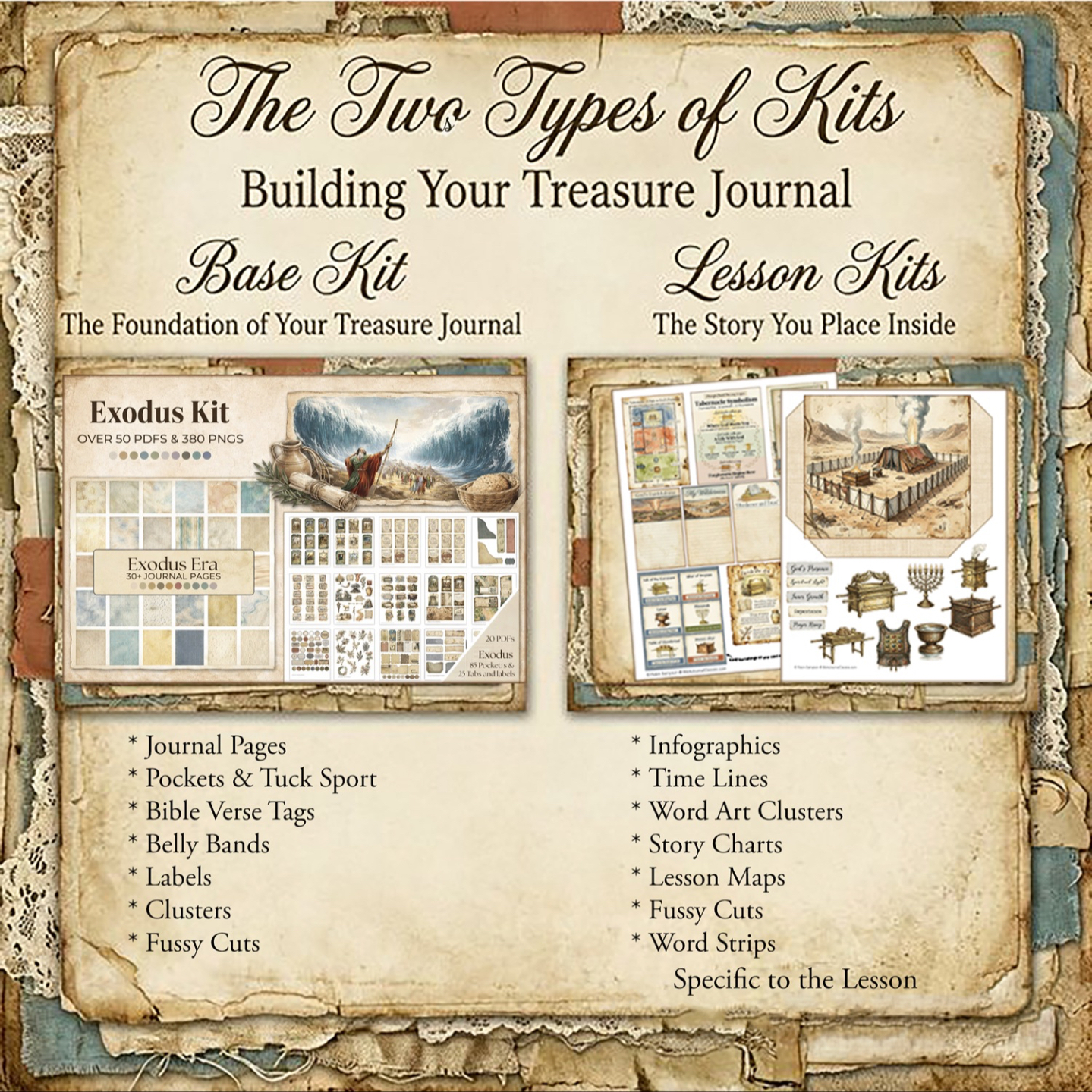 This is your base kit, created as a foundation for your journey. With each lesson, you’ll also receive 17 lesson-specific kits, thoughtfully designed to add new layers as you walk step by step through the story of Joshua.